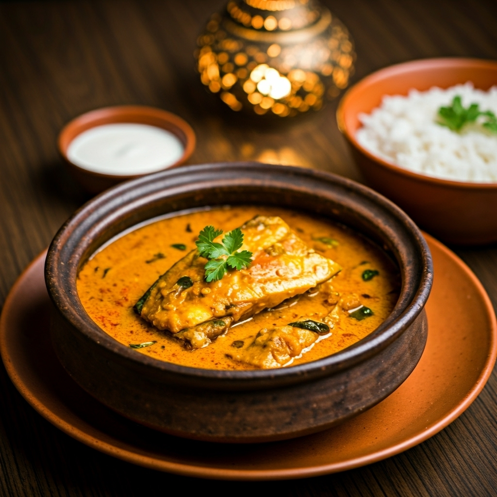 Goan Fish Curry: Kingfish, kokum, fresh coconut milk, slow-cooked for 3 hours – INR 950. A rich and aromatic curry that transports you to the coasts of Goa.